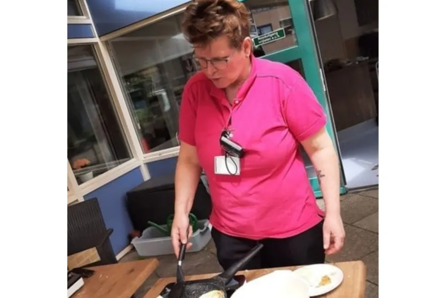 "Ik ben nog drie dagen per week als kok aan het werk. Omdat ik wat meer contact wilde krijgen met de bewoners van Geesterheem én omdat ik zag dat collega’s in de avonduren af en toe wel wat hulp kunnen gebruiken, liet ik m’n werkgever een tijdje terug weten dat ik graag gebruik wilde maken van de mogelijkheid om mij bij te scholen. Door de opleiding kan ik, als dat nodig is, medewerkers ondersteunen die zich ’s avonds over de ouderen ontfermen. Dat doe ik gemiddeld twee keer per week. Daarnaast hou ik me inmiddels ook bezig met welzijnsactiviteiten voor de ouderen, waaronder het bakken van taarten. Ontzettend leuk, de combinatie van die verschillende werkzaamheden.”