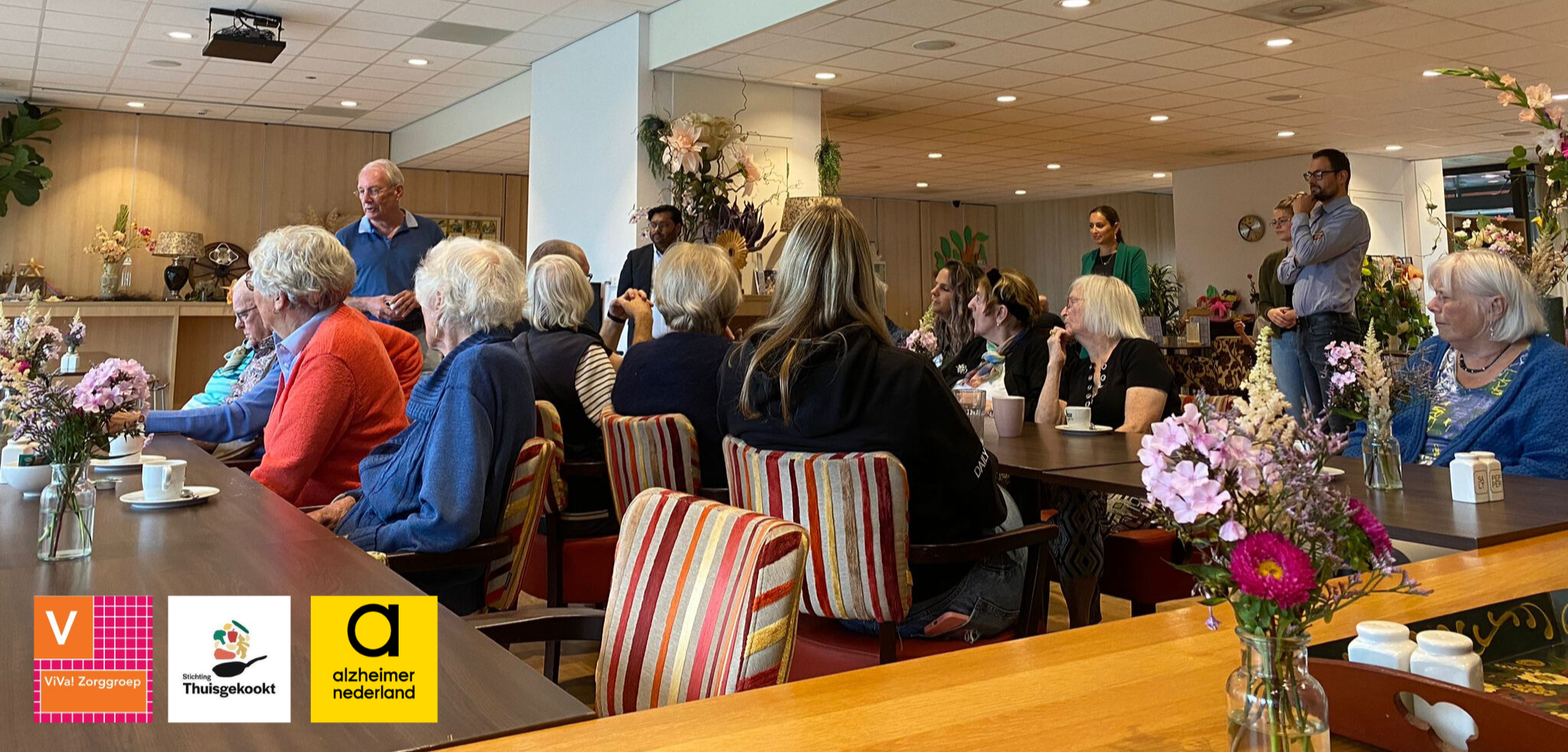 Ieder jaar is het op 21 september 2023 Wereld Alzheimer Dag. Op deze dag vragen we extra aandacht voor dementie. De regionale afdelingen van Alzheimer Nederland organiseren mooie activiteiten om samen van te genieten én om meer bekendheid te geven aan het onderwerp dementie. Dit jaar was het thema ‘Samen aan tafel’. ViVa! Zorggroep stelde de restaurants in woonzorglocaties De Boogaert in Castricum en Heemswijk en Heemskerk graag beschikbaar.